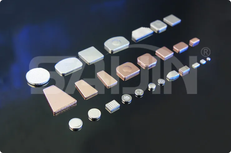 3,AgW,CuW,AgWC contacts use different powder materials with adding inside Ni ,Co mineral and by using persintering and active sintering technology to improve the consistency and ameliorate electrical function of contact materials .