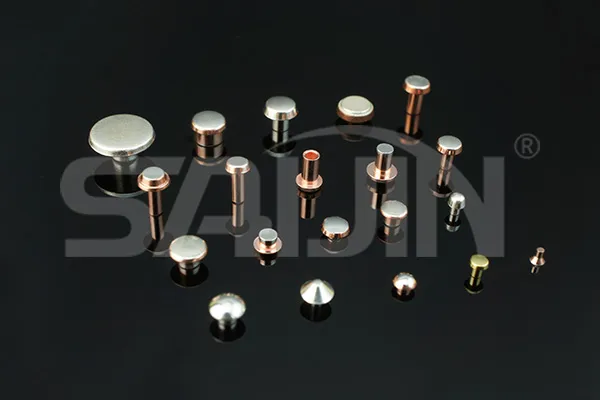 SAIJIN specializes in the production of silver alloy and copper-based composite rivet contacts, suitable for relays, switches, circuit breakers and other equipment. It provides solid / bimetal / button type and multiple styles, and supports customized size and surface treatment. High conductivity, wear-resistant and corrosion-resistant design ensures stable operation in high current and high frequency scenarios.