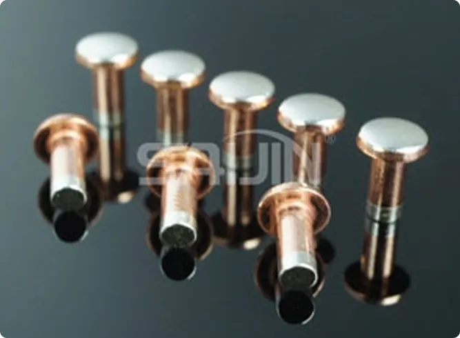 Tri-Metal rivets are upgraded from the Bi-Metal structure - the base end of the rivet and the head contact are synchronised with a silver alloy cladding, while the core retains a highly conductive copper substrate, and the silver layer is homogenously distributed at a ±0.001mm level of thickness through a gradient metallurgical process.